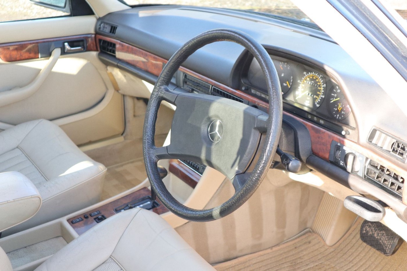 We are delighted to offer this beautiful 1987 Mercedes-Benz 420se, finished in Midnight Blue Paintwork over a Beige Leather Interior. Please watch our detailed Internal/External video showing the fantastic condition this car is in. Starts first time and mechanically excellent, this Mercedes is a joy to drive. Will keep up with (and pass!) modern traffic with ease. This has been my own personal car for around for 8 or 9 months. In that time I have had brand new 18" Deep Dish Alloys with Brand New Pirelli P Zero tyres, Engine fully serviced with new Spark Plugs, HT Leads, Distributor Cap and Rotor and Oil/Filter and new air filter. Also has had 2 x New Bosch Fuel Pumps and a new Over |Voltage Protection Relay fitted. The car was off the road for 12 years before I purchased it and re-commissioned it. Inside, everything works and is completely original. The only thing not working is the central locking. Will come with a 3 Month/3000 Mile Warranty, MOT Until September 2022.